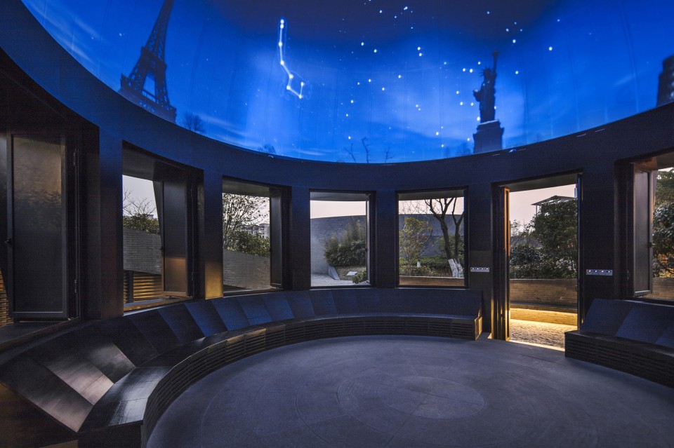 Astronomik parklar, dairesel bölgelerden geometrik bir alan ve avlu olarak inşa edilmiş. Üst kısmı içe doğru katlanan tavanlar, beyaz tabanlara karşılık gelerek kapalı bir geometriyi vurgulamakta.