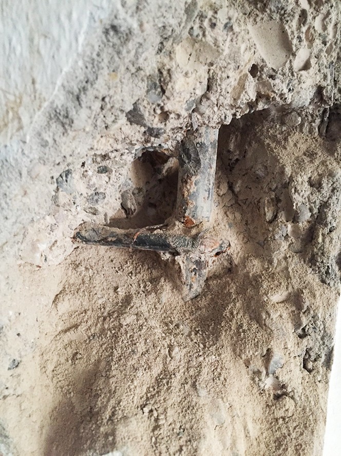 Resim 3.a’daki numunenin basınç dayanımı 11 MPa’dır. Numunede renkli bölgelerde henüz karbonatlaşma başlamamış olup, renksiz dış kabukta ise karbonatlaşma mevcuttur. Yapının kolonlarında bu bölgede yer alan donatıların paslanması, resim 3.b’de yapıya ait kolonda görüldüğü gibi kaçınılmazdır. Geçirimsiz ve yüksek kaliteli betonun öneminin sadece dayanım olarak değil, yapıların dayanıklılıkları (dürabilite) açısından da son derece önemli olduğu, bu görüntülerden de anlaşılmaktadır.