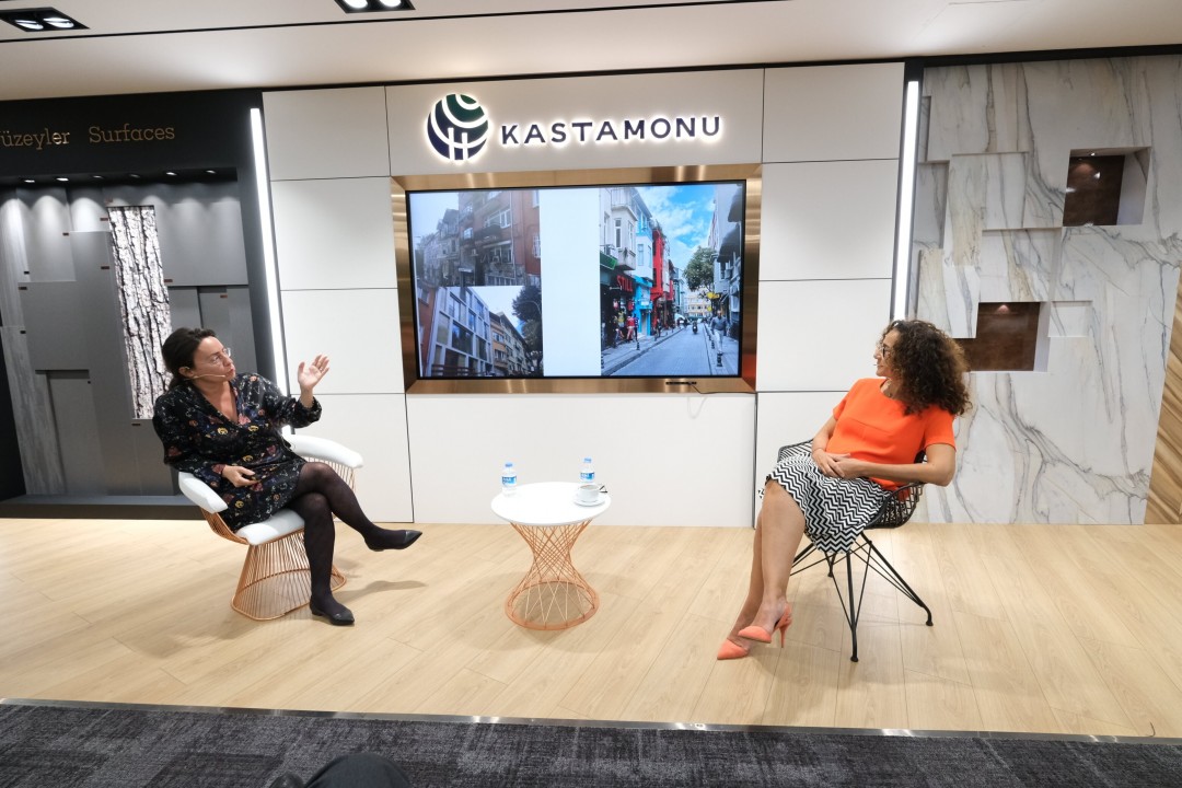 Mikro ve makro ölçeklerde renk kullanımı hakkında bilgiler paylaşan içmimar Jale Kulin, mimaride hacim değiştikçe rengin de değiştiğine dikkat çekti. Rengin yaşadığımız her alan üzerinde psikolojik bir etkisi olduğunu, bu nedenle renk ve duygunun birbirine çok bağlı olduğunu hatırlatan Kulin, sözlerini şöyle sürdürdü: “Renkten ne kadar etkilendiğimizi unutuyoruz, oysaki doğadaki her canlı kendi içinde bir renk barındırıyor ve biz bunu her gün bir çiçekte, bir böceğin ya da kelebeğin kanadında görebiliyoruz. Renk, ne kadar minimal olsa da aslında bir ifadedir ve Türkiye’de insanların çok konuştuğu ama cesaret edemediği bir konudur.” dedi.