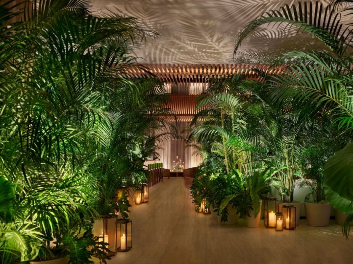Ağaçlarla çevrili bahçe alanını barındıran bir girinti cepheden kesilerek sürdürülebilir mimarinin dışı atriyuma açılıyor ve beton kirişler ortaya çıkıyor. Beton kirişler binanın tabanını yükselterek Kuma'nın şehrin "kapalı sundurma" dediği şeyi yaratır ve Park Avenue'yi bitişik paseo ile bağlıyor. Bu "sundurma" yoğun bir şekilde çevrelenecek.