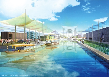 Su Projenin etrafını çevreleyen su, fuarın temasına uygun olarak ıslak alan olarak hizmet verirken aynı zamanda alanda alternatif bir ulaşım yolu olarak değerlendiriliyor. Mimarlar suyu aynı zamanda fuarın canlılığını ve yaşayan sistemini kent dokusuna bağlamak amacıyla tekrardan değerlendirerek odak noktası olacak bir öğe olarak ele alıyorlar.