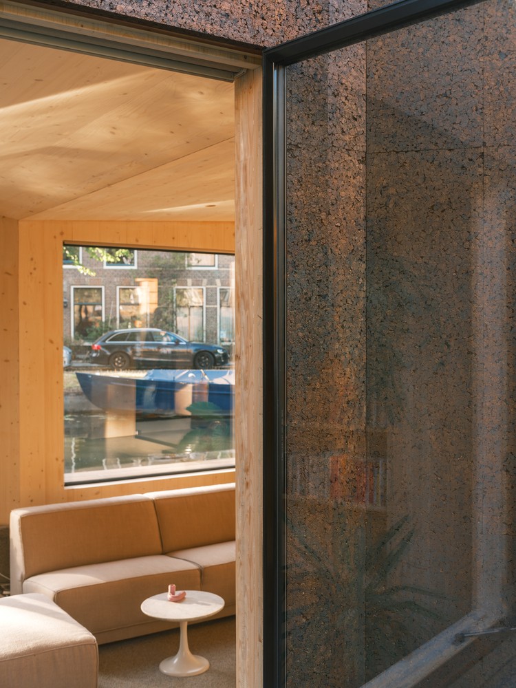 Rotterdam merkezli mimarlık stüdyosu Studio RAP, ahşap ve mantardan yapılmış sürdürülebilir bir yüzen ev olan 'The Float'ı tamamladı. Açıkta kalan ahşap iç kısım ışığı yakalar ve sakin bir iç mekan deneyimi yaratırken masif mantar dış kaplama, tarihi Leiden şehrinin atmosferiyle ustaca uyum sağlıyor. Ağırlıklı olarak iki malzemenin yani kereste ve mantarın kullanımı, aynı anda hem basit hem de zarif detaylar yaratırken yapının inşasını radikal bir şekilde basit kılar. Sürdürülebilir mimari projede sürdürülebilirlik kolayca sağlanmış.
