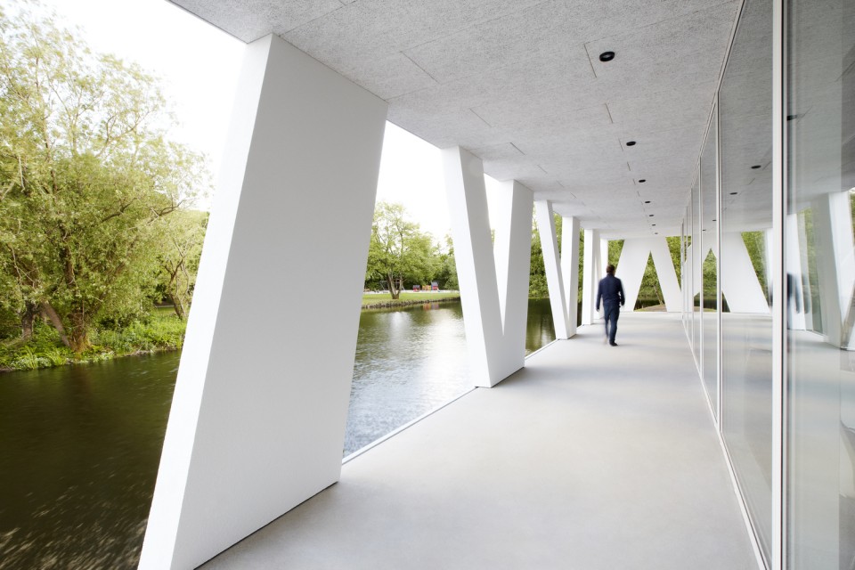 Danimarka’ nın küçük bir kasabasındaki parkta kurulan heykel pavyonu yansıtıcı bir gölün üzerinde eşsiz bir görünüm sunuyor. Göl üzerindeki heykelsi ve çekici mimari tasarımıyla kendini gösteren pavyon, sanat müzesine ev sahipliği yapıyor.