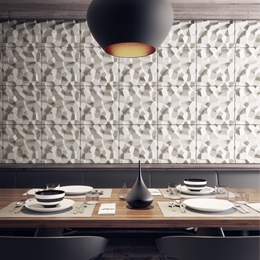 Eski Yunanca’da beş köşenin birleşimi anlamına gelen Penta, farklı yüzey ve açılarda birbirine bağlı çokgen dokulardan oluşan modüler karolar olarak karşımıza çıkıyor. Çok yüzlü beton bazlı karolar duvara döşendiğinde doğada olduğu gibi çok sayıda yansıma içeren hareketli bir yüzey ve katmanlı modeller oluşturuyor. Tasarımcısı Cristina Vezzini’nin çocukluğundaki tohum, bitki ve su altı oluşum görüntülerine sadık kalarak şekillendirdiği Penta’nın özünü kristal ve mineral oluşumlar meydana getiriyor. Kusursuz kabartmalarla duvarlarda üç boyutlu bütünlük oluşturan Penta, çağdaş görünümü ve heykelsi hatlarıyla da modern sanata göndermeler yapıyor.