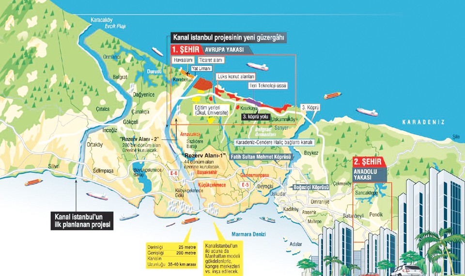 Ne için? Sadece %2,5-%3 olan transit trafiğe çözüm olarak sunulan 3.Köprü9 için mi? Kentin asla kuzeye genişlememesini ikaz eden ve 3.Havalimanını da Silivri’ye konumlandıran İstanbul Çevre Düzeni Planını ihlal ederek, kuzeyde 7500 hektar alanı betonlaştırmak için mi? Üstelik, dünyanın en büyük havalimanı olan Atlanta 95 milyon yolcu kapasitesi ile sadece 1900 hektar iken, 150 milyon yolcu kapasitesi öngörülen 3.Havalimanı10 fazlasıyla 2 misli alan kaplasın, ama neden 7500 hektar? Zurnanın zırt dediği yer, bu mega projelerin aslında ulaşım değil emlak-inşaat projeleri olduğudur11.