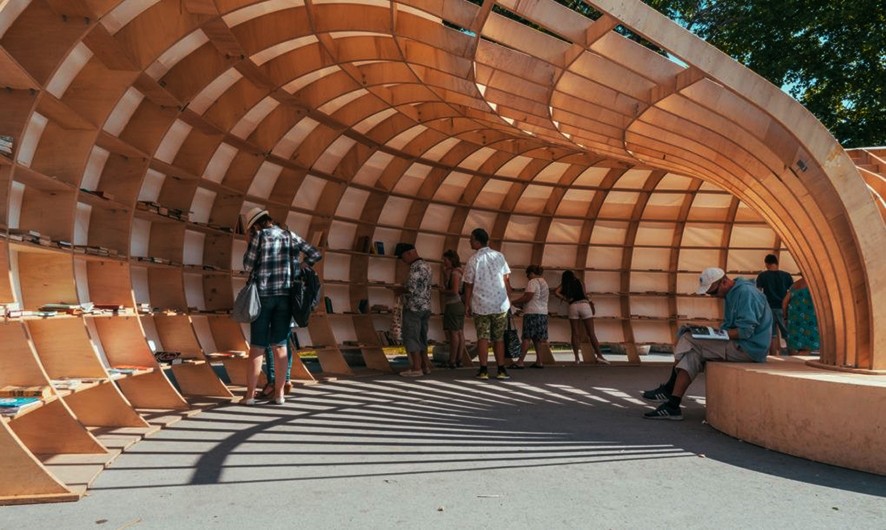 Bulgaristan’da cadde üzerinde kurulan kamusal kütüphane genç mimari ve tasarım ekibi Downtown Studio tarafından tasarlandı.