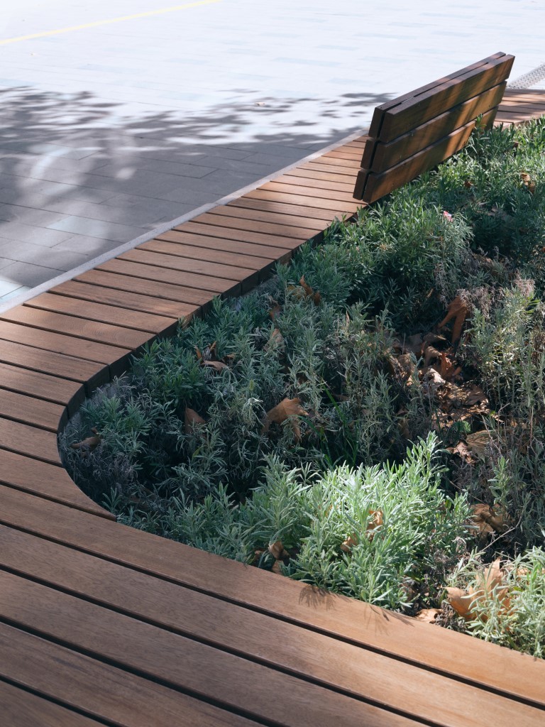 Öncelikle iki eski araç yolu arasında kalan ve karşıdan karşıya geçişlerde bir engel oluşturan yüksek yürüyüş yolu, alanın yeniden tesviye edilmesi ile mevcuttaki kaldırımlarla bütünleştirilmiş. Koruma altındaki çınarların etrafını çevreleyen imalaralar, geçirimli betonla değiştirilip ağaç köklerinin su alması sağlanmış. Ayrıca yeni tasarlanan oturma bankları bu ağaçları çevreleyip onları koruyacak şekilde tasarlanmış. Bu oturmalar ziyaretçilerin cadde boyunca kamusal alanın merkezinde, çınarların gölgesinde, cadde seslerini dinleyerek vakit geçirmelerine olanak tanır.