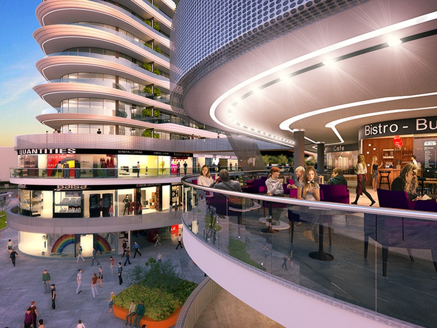 89.500 m²’lik toplam inşaat alanına sahip projede cadde ticareti, mimari tasarımın bir parçası haline getirilerek, kentle bütünleşen ve yaşayan bir zemin kurgusu oluşturulmuş. Konut bloklarının arsa ve yol ilişkisinden doğan formların yumuşatılmasıyla tasarlandığı projede, üçgen prizma form sayesinde konut cephelerinin doğrudan birbirlerine bakmaları engellenmiş ve her birim için manzaraya karşı ferah bir görüş alanı oluşturulmuş.