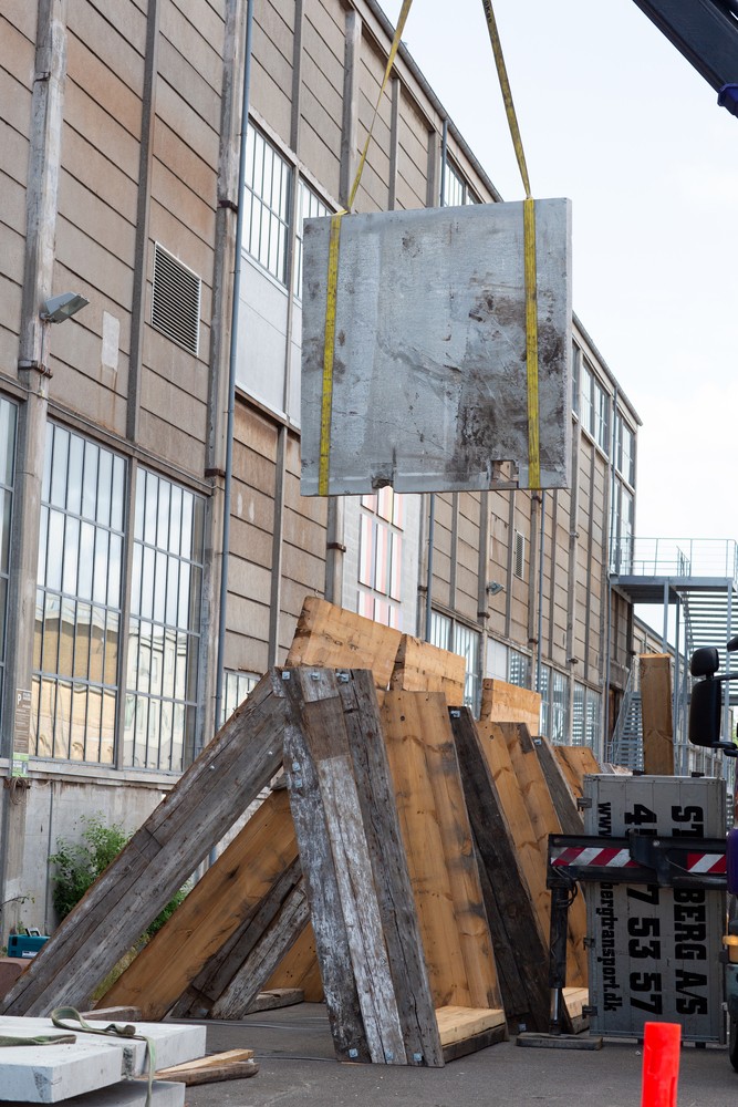 (P)RECAST projesi genellikle teknik ömürlerini doldurmaktan uzak unsurlar kapsayan planlı yıkımlar çerçevesinde bir alternatif arayışını ifade eder. Projenin ardındaki ekip, prefabrike beton unsurların değerlendirilmesi, sökülmesi, taşınması ve yeniden kullanılmasına dair döngüsel metotlar geliştirmek amacıyla, değer ve somutlaşmış karbon kaybına sebep olan bu unsurları geri dönüştürmek yerine, beton sektörünün liderleriyle iş birliği yapmıştır. Pavyon yıkılmış 200 yıllık ahşap kirişlerle kuşatılmış beş modül beton duvardan meydana geliyor. Bu unsurlar sırasıyla Vanløse'deki bir okulun ve Østerbro'daki Jagtvej 169'un yıkımından temin edilmiş.