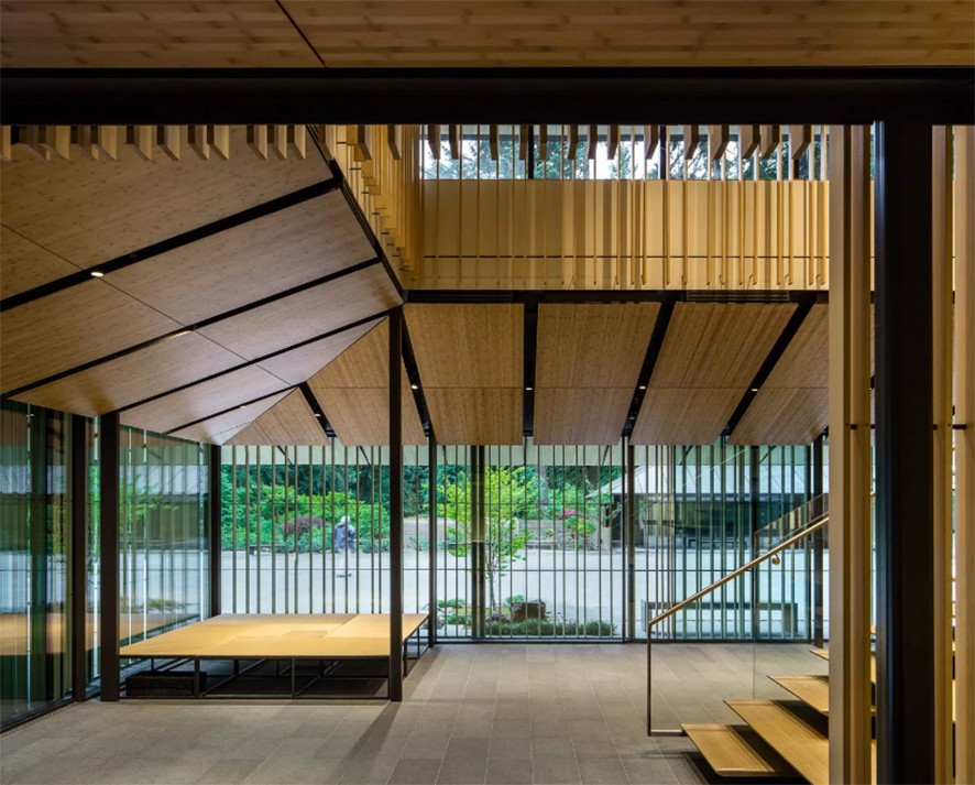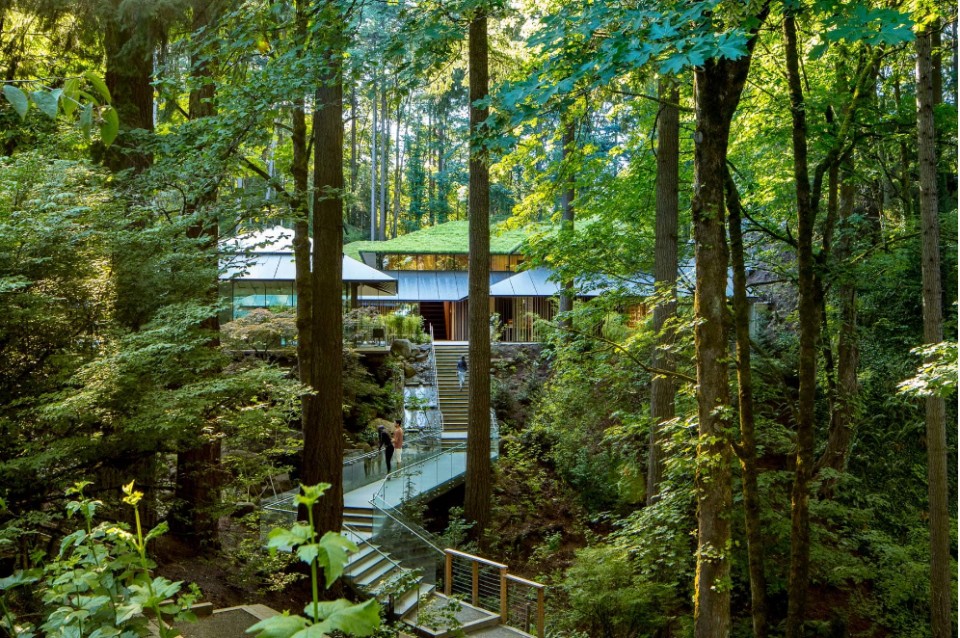 Mütevazi düzeniyle Amerika Portlan’da yer alan insan ölçekli bina kurulumu ve avlu bahçeleriyle şehrin doğasına Japon peyzaj kültürüyle bakmamızı sağlıyor. Doğanın ruhuna duyduğu saygı ile inşa edilen yapı Portlan’da bir kırsal bir alana kurulmuş modern bir Japon Köy evini ve bahçelerini içeriyor.