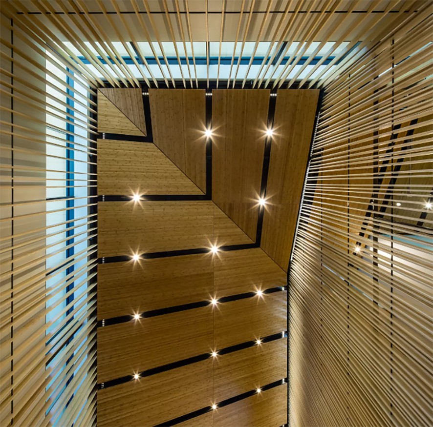 Mimari ile peyzajın arasındaki kesişimler çatıdaki metalin dokunuşu ve bitki örtüsündeki keskin çıkıntılarla bütünleşiyor. Bölgenin yağmurlu iklimini ve güneş ilişkisinin verimli kullanıma dönüşümünü sağlayan gözenekli sınırlar yapıya belirsizlik ve esneklik katmakta…