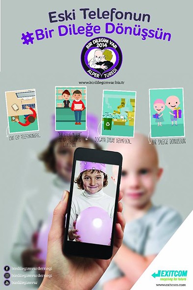 Dernek gönüllülerinin cep telefonu, laptop, tablet gibi çalışmayan veya kullanmadıkları elektronik eşyalarını derneğimize bağışlamasını amaçlıyoruz. Bu kullanılmayan, bozuk elektronik eşyalar derneğimize destek veren geri dönüşüm şirketine verilecek. Gönüllülerimiz dilerlerse bu aletleri direkt olarak kendilerine en yakın kargo şirketine giderek, isim-telefon ve e-posta adreslerinin yazılı olduğu bir zarfın içinde “Bir Dileğim Var Derneği/Exitcom Recycling Tesisleri Çepni Mahallesi, Suadiye Bağdat Caddesi No:40 41170 Kartepe/Kocaeli” adresine ulaştırabilirler. Evlerde kullanılmayan ortalama 8 milyon kadar cep telefonu olduğu tahmin ediliyor. Bize bu rakamın yalnızca 16'da biri gerekiyor, yani 500 bin telefonla konukevini yapabiliyoruz. Kampanya için gönderilecek telefon veya tabletlerin bozuk, çok eski model veya kırık dökük olması hiç fark etmiyor. Bu aletler geri dönüşüme girdiğinde içlerinden bakır, paladyum, altın ve gümüş ayıklanıyor. Bu maddeler toplanıyor ve satılıyor. Böylelikle çevreye de duyarlı bir iş ortaya çıkmış olacak. Geri dönüşümü yapan şirket, bu işten hiçbir kar elde etmeyecek. Satıştan sağlanan tüm gelir derneğimize aktarılacak. TÜBİTAK tarafından denetim altında olan güvenilir bir firma. Mimar bir dostumuz da hiç ücret almadan konukevi projemizi hazırladı.