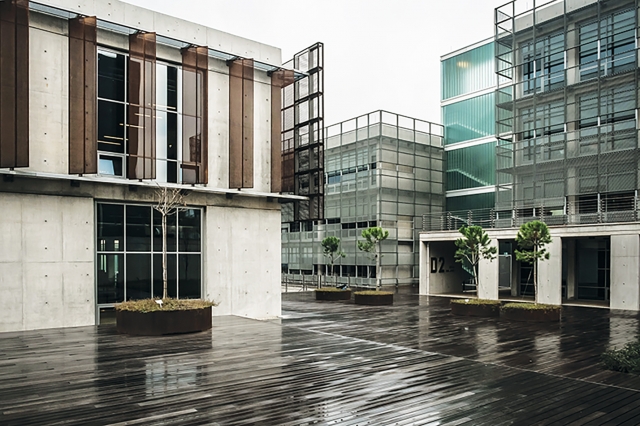 Yapı inşa alanında bulunan kuzeydeki hacimler kapalı kütleler halinde iken güney kısımda ise bahçe ve ormana açılan açık bir bölge bulunmakta.