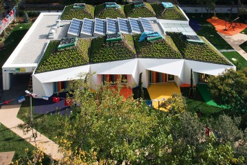 Yerel stüdyo Field Architecture tarafından tasarlanan Palo Alto'daki bir sinagog olan Congregation Kol Emeth'in sürdürülebilir özellikleri arasında bir fotovoltaik dizi ve hurda ahşaptan yapılmış bir kafes yer alıyor. Sürdürülebilir mimari sinagog kompleksi evler, otoyol ve mezarlıklarla çevrili üçgen bir alanda yer alır.