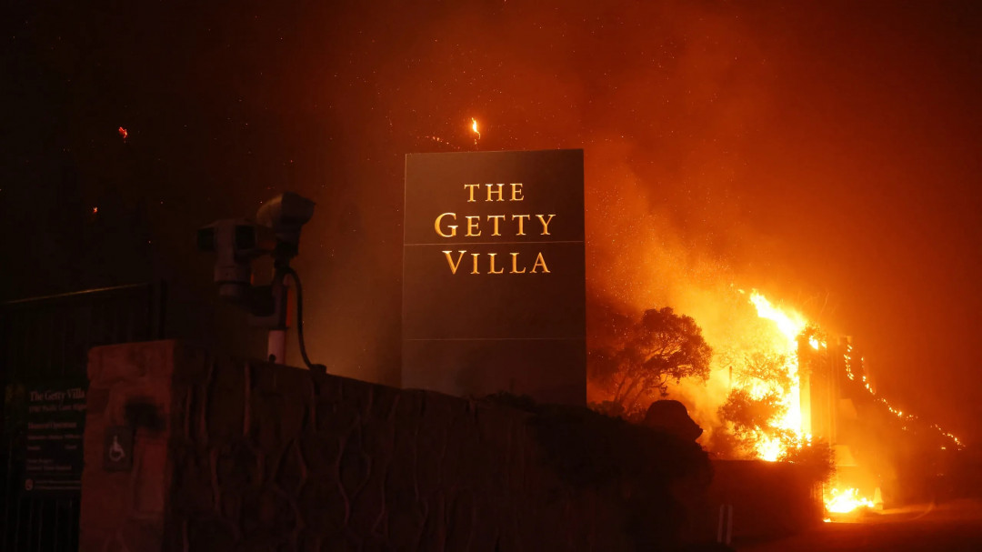 8 Ocak’ta Palisades yangını, Getty Villa Müzesi’ne kadar ulaştı. Müzenin çevresindeki bazı ağaçlar ve bitki örtüsü yansa da, koleksiyonlar ve müze personeli zarar görmedi.