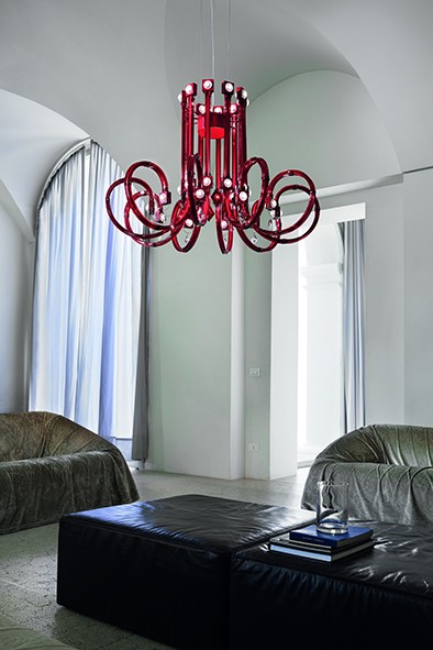 Avize konseptini en küçük ve esasen gerekli öğelerine indirmeyi başaran Marc Sadler, bu öğeleri annesinin zamanından kalma geleneksel aydınlatma kalıplarının dışında işler yapmak için kullandığı belirtiyor.
