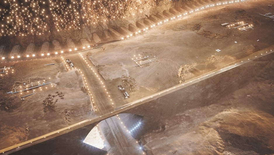 Vadi, hastaneler, okullar, kolejler, spor ve kültürel etkinlikler, alışveriş alanları, uzay mekiği ile haberleşen istasyonlar gibi özel yapılara sahiptir. Kazılardan çıkarılan ek malzemelerden ile oluşturulan yapay bir dağ, yardımcı bir güç sistemi, gezenler için şehir içi kamyonlar, depolama ve park yeri şehrin görsel çerçevesini oluşturuyor.