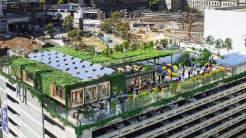 Ön bahçeye gömülü bir su deposu çatıdan su toplayarak tuvalet sifonu ve sulama için kullanılıyor.
