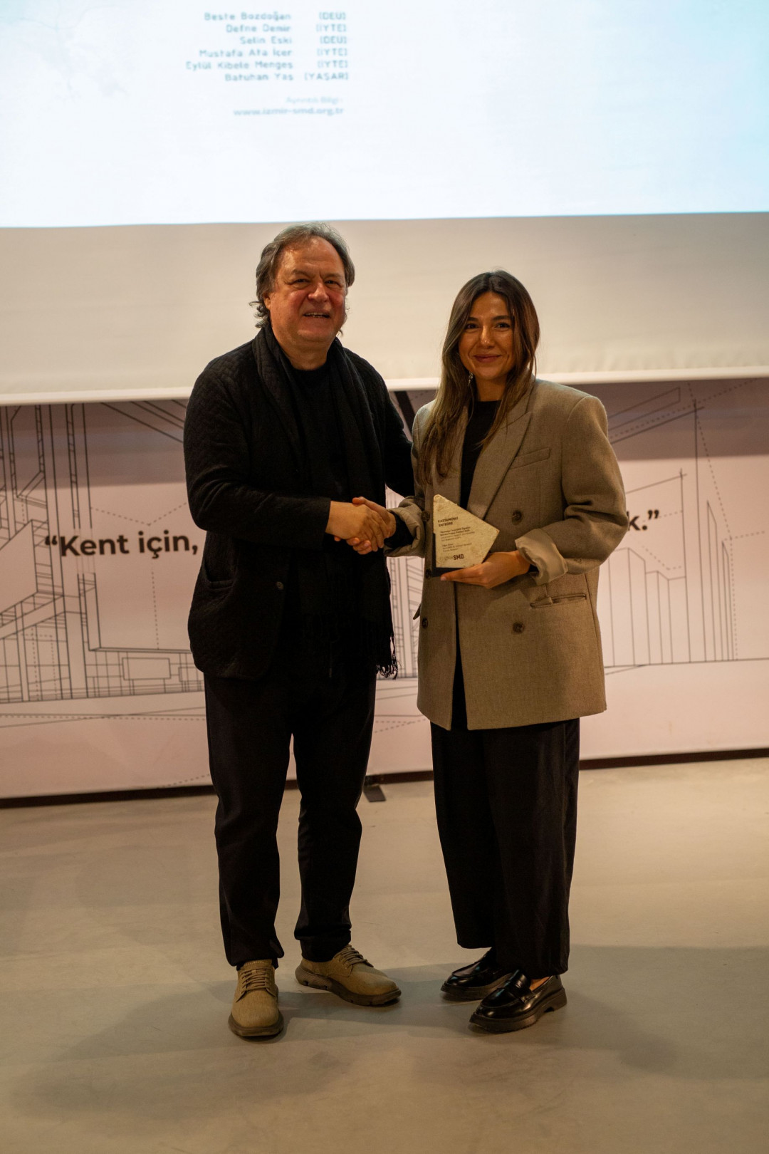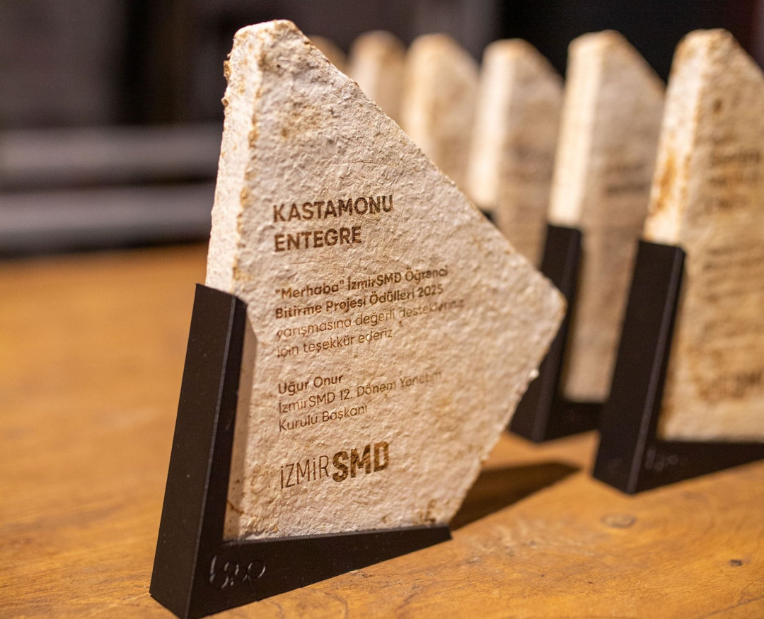 Ahşap bazlı panel sektörünün öncü markalarından Kastamonu Entegre’nin Genç Destek Sponsoru olarak katkı sağladığı “Merhaba” Öğrenci Bitirme Projesi Ödülleri, 11 Aralık’ta İzmir SMD ofisinde düzenlenen sergi ve ödül töreniyle tamamlandı. İzmir Serbest Mimarlar Derneği (İzmir SMD) tarafından 2017’den bu yana yürütülen program, İzmir’de mimarlık eğitimi alan lisans öğrencilerinin bitirme projelerini görünür kılarak genç mimar adaylarını desteklemeyi hedefliyor.