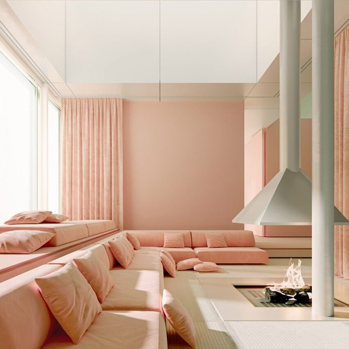 Metaverse Kış Evi’nin iç mekanlarında, genel olarak sakinleştirici özelliğe sahip yumuşak pembe tonlar seçilmiştir. Kış Evi’ndeki bazı ögeler Reisinger tarafından özel tasarlanırken, bazıları ise beton, cam, çelik ve hafif bej tonlara sahip doğal malzemelerden oluşuyor. Malzemeler, her odaya değişen derecelerde sıcaklık sunan bir doku ve renk kombinasyonu sağlayacak şekilde tanımlanıyor. Özenle seçilmiş malzemeler, metaversedeki Kış Evi’nin karakteristik ikiliğini temsil ediyor ve tüm mekanlarda dinginlik hissini taşıyorlar.