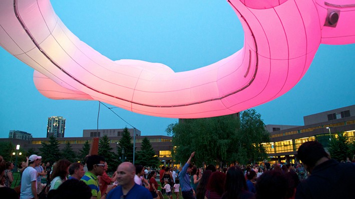 Örneğin Minneapolis şehrinde, duygusal dili Twitter'dan gerçek zamanlı olarak analiz eden ve renkli ekranlar aracılığıyla kuruluma geri yansıtan hava basınçlı bir bulut tasarlanmıştır. Bu bulut, halkın fikrilerine ve müdahalesine olanak sağlar. Bu sayede kent sakinleri ile bir etkileşime girer. Buna başka bir örnek olarak, internet üzerinden bağlanılan ve ziyaretçilerin varlığı ile çevresel faktörlerin bir kombinasyonuna ışıklı fiber dalgalarıyla yanıt veren diğer bazı yapılar örnek verilebilir.