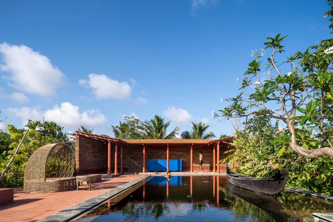 Kil karolar, toprak çömlekler ve sıkıştırılmış toprak tuğlalar gibi ham ve dokunulabilir malzemeler yerel Rain Studio tarafından tasarlanan Hindistan'ın Chennai şehri civarındaki bu avlulu evi belirliyor. Karai ismi verilen ev, Kuvathur sahil kasabasında doğrudan yakındaki bir plaja açılan, tarlalarla kaplı bir kıyı bölgesinde müşterileri için bir hafta sonu sığınağı olarak tasarlandı.