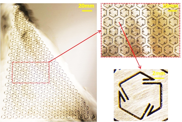 Ekip; çelik bir levhayı oyarak elastik ve akustik dalgaları bir hedeften uzağa bükmek ya da kırmak için geometrik bir mikroyapı modeli geliştirdi. Doç.Dr. Guoliang Huang, “önemli altyapıların ya da ikamet edilen binaların etrafında, büyük enerji taşıyan şok dalgalarının yönünü metamalzeme bir pelerin yoluyla değiştirerek, sivil hayatlar ve ortak mülkler, yıkıcı depremler veya tsunamilerden kurtarılabilir” diyor. Takım, kolayca her yerde bulunabildiği için çeliği seçti; ama Huang, diğer metallerin ve plastiklerin de benzer bir işlevselliğe sahip olmak üzere tasarlanabileceğini söylüyor.