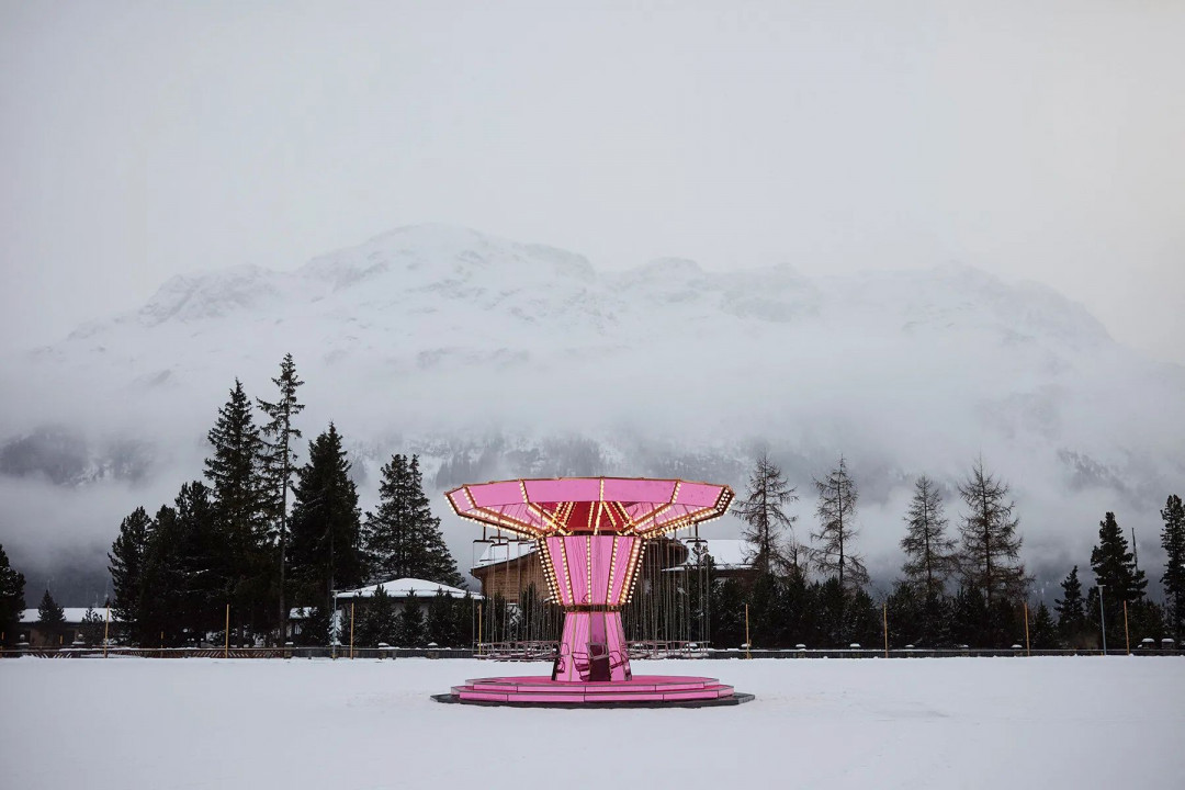 Alpler’in ortasında, bembeyaz bir buz pistinin üzerinde beliren pembe aynalı bir atlıkarınca düşünün. İlk bakışta tuhaf, hatta biraz çocuksu. Pop art bir masal dünyası sanki. Ama yaklaştıkça durum değişiyor. Bu bir eğlence oyuncağı değil, adeta mimarlığın zamanla kurduğu ilişki üzerine sessiz bir deney. Carsten Höller’in Pink Mirror Carousel adlı işi, dönüyor ama acele etmiyor. Hatta bilerek yavaşlıyor. Öyle yavaş ki, içine bindiğinde “bir şey olacak mı?” diye beklerken aslında olan bitenin senin içinde gerçekleştiğini fark ediyorsun. Aydınlanma!