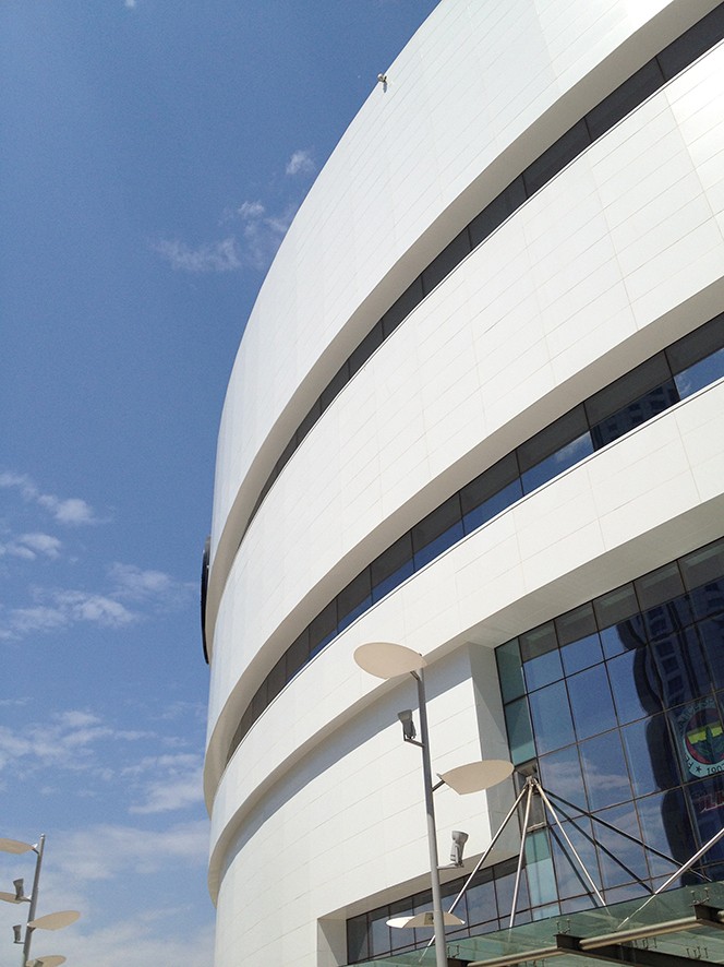 Evet doğru birçok projemizde Fibrobeton kullandık. Aslında onlar bu işi yapmaya başladıkları tarihten beri hep ilgimi çeken bir ürün olmuştur fiber beton. Çünkü geçmişte bu kadar çok cephe kaplama malzemesi yoktu açıkçası, tuğla örülerek üzerine sıva yapılıyordu ama bu yöntem çok ilkel tabi ki, belki 2-3 katlı bir yapıda olur ama 7-8 katlı binalarda da böyleydi durum. Başka seçenek yoktu çünkü... Fibrobeton buna uygun bir materyal geliştirdi. Çimento esaslı cam elyaf ile çok güzel ve akıllıca bir ürün geliştirdiler. Çok iyi Ar-Ge yaptılar ve duvar haline getirdiler. Fibrobetonu çok önceden beri kullanıyoruz İstinye Park İstanbul’da da kullandık. İstinye Park projesinin “concept design” aşamasında DDG firması ile çalışırken cephelerin GRC panel kaplama fikrini oluşturmuştuk. Zaten daha önce yaptığımız projelerde de cam elyaf takviyeli beton paneller kullanmıştık. Türkiye’de bu imalatın önde gelen firması Fibrobeton idi. Projelerin temel çizimlerini oluşturduktan sonra Fibrobeton ile detaylı imalat resimleri çalışması yaptık ve bu çalışmalarda diğer cephe elemanlarını (cam giydirme, taş kaplama gibi) koordine ettik. Zor ve yorucu bir çalışma sonucu proje bitirildi.