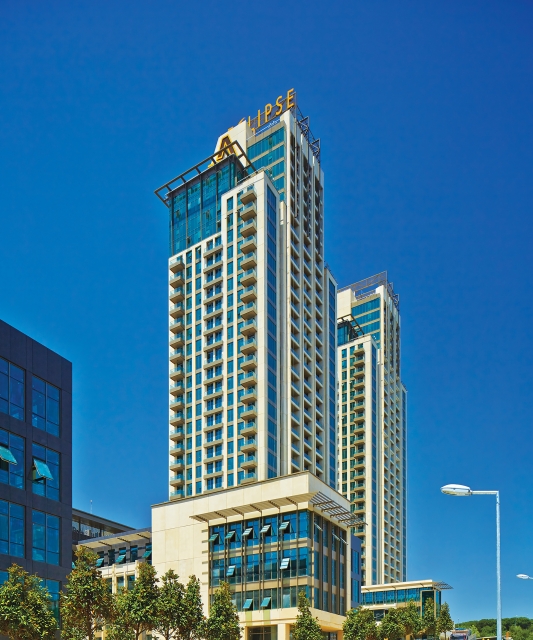 550 konutun yer aldığı bu proje, mimari formu ile dalgalı bir topoğrafyada yükselen zarif bir anıtsallık ortaya çıkarmayı hedeflemiştir. Projenin hacmi yatay bir aksta avlular ve yeşil teraslar oluşturmakta, iki konut kulesi ise yatay düzlemdeki enerjiyi serbest bırakarak, şehrin her yerinden algılanabilecek ve güçlü bir şekilde dikeyde yükselmektedir. Yaklaşık 170.000 m²’lik inşaat alanı olan proje, fonksiyonellik kadar mekânsal sürekliliği de önceliğine alan bir mimari çalışmadır, zemin seviyesindeki ticari birimleri ve ofis alanları ile dikeydeki konutlar belirli bir ortak kullanım alanı ihtiyacı yaratmaktadır. Bu da sokak ölçeğinde belli bir canlılık ve hareketlilik getirmektedir. Eclipse, Maslak bölgesi için önemli bir soruna dönüşen yaya akışının sürekliliğinin sağlanmasına katkı sunmaktadır. Hızla gelişen ve inşaatların sürdüğü Maslak’ta tekil ve yüksek yapıların çevreleri ile ilişki ve etkileşim sağlayamadığı, insan ölçeğinden uzak oldukları bilinen bir gerçek, bu bağlamda Eclipse Maslak Evleri projesi belli bir gündüz ve gece nüfusu barındırdığı için şehircilik anlamında da bölgeye bir katkı sunuyor.
