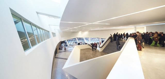 12 bin m2’lik merkez, çelişen geometrik biçimlerin bir tezahürü. Merkez büyük bir giriş salonu, üç oditoryum, çok amaçlı etkinlik alanı, konferans odaları, ofisler, restoran, yeraltı park alanı ve bir kamuya açık çatı terası içeriyor.