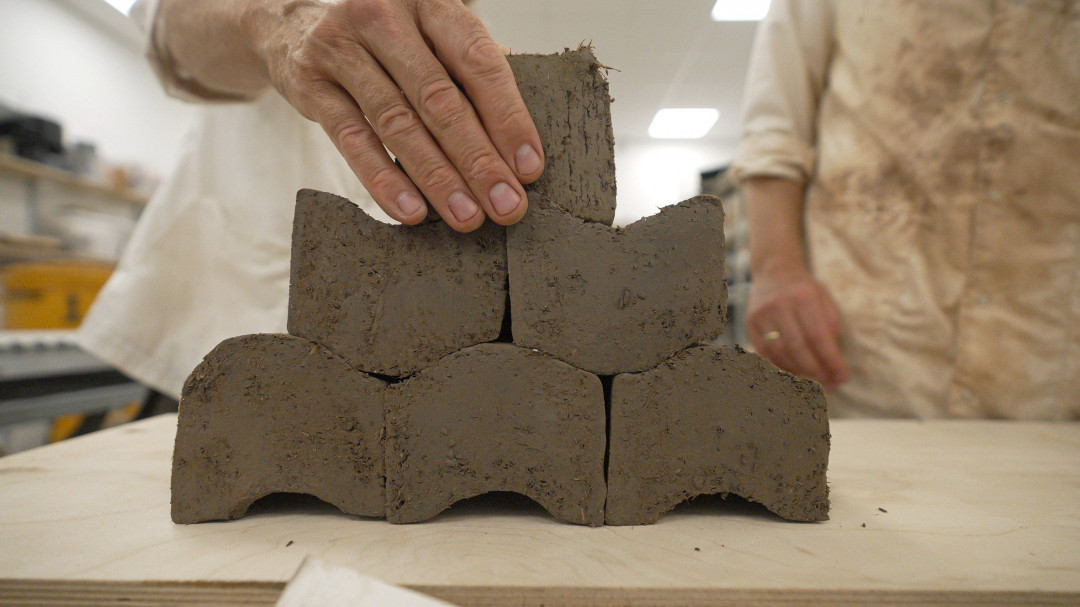 Araştırmacı Tavs Jorgensen, düşük karbonlu bir biyomalzeme olan mısır koçanının tuğla şekillerine ekstrüzyon edilmesine yönelik yenilikçi bir yöntem geliştirdi. Bu yöntem, mısır koçanı malzemesinin inşaatta daha erişilebilir hale gelmesini hedefliyor.