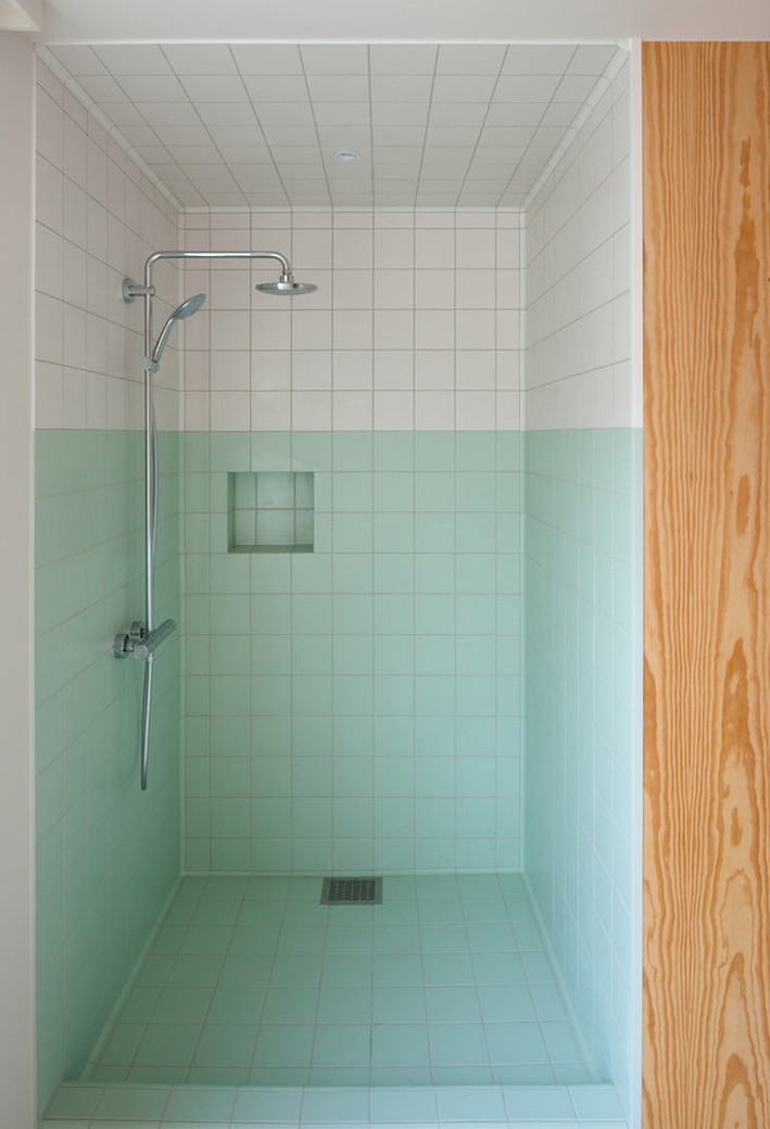 Soluk yeşil fayansların baca tarzı duşu kapladığı küçük bir granit ev gibi, birçok modern ev bu estetiği kapsıyor. Örneğin, House L&W'nin iç mekanları çoğunlukla beyazdır; ancak nane seramik karolarla kaplı retro esintili bir duş, 70'lerde çok popüler bir banyo gölgesi içerir (hatta The Shining gibi ikonik filmlerde yer alır).
