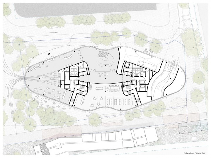 Schmidt Hammer Lassen tarafından tasarlanan Pekin Sanat Merkezi Opera binasının tasarımı, akustik gereksinimlere uygun tasarlandı. Halk, sanat merkezine yer altındaki bir metro istasyonu aracılığıyla erişebilir; burada ayrıca bir tiyatro, kütüphane, müze, otopark ile perakende ve yemek alanları da yer alıyor. Bu alanların arasına bulunan gömme bahçeler, ziyaretçileri sonunda ilgili binaya ulaştıracak olan ortak platforma yönlendiriyor.