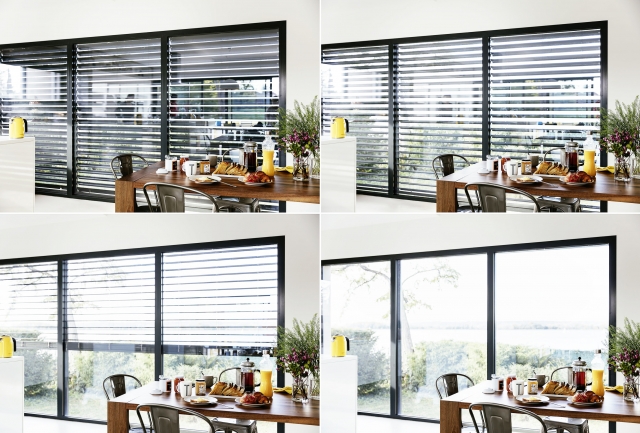 Radio Technology Somfy® özelliği sayesinde dış cephe jaluzileriniz, evinizdeki diğer motorlu açılır sistemlerle (tenteler, perdeler ve garaj kapıları) aynı kumanda üzerinden yönetilebiliyor.