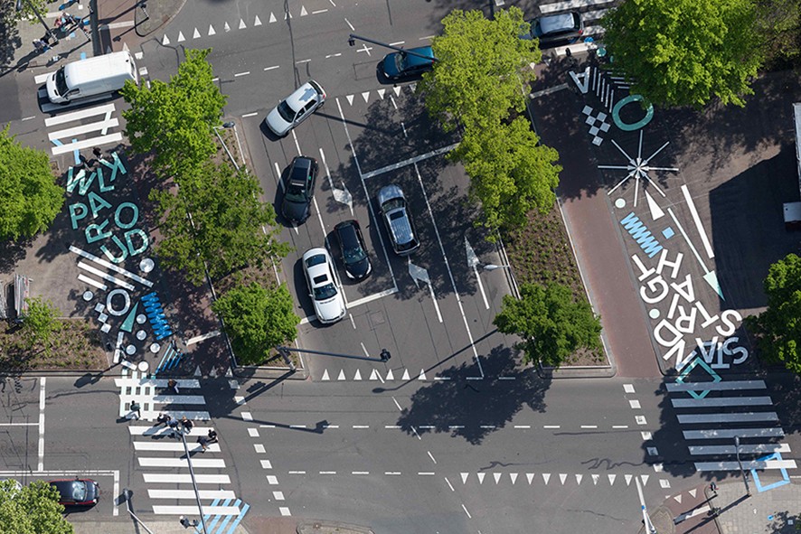Sadece yol işçileri tarafından kullanılan elemanlarla Opperclaes, yol kavşağının farklı noktalarını birbirine bağlayan renkli bir çalışma ortaya koymuş. “Şehir yapmak yalnızca plancıların ve mimarların işi değil. Sürdürülebilir, sağlıklı, başarılı bir şehir yaşamına doğru geçiş yapmak istiyorsak farklı yaratıcı disiplinleri de bu sürece dahil etmeliyiz,” diyor yaratıcı stratejist Jorn Wemmenhove.