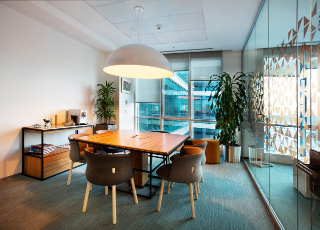 Yoğun bir iş temposuna sahip olan çalışanların gün içerisinde stresten uzaklaşarak, motive olmaları için çok fonksiyonlu ortak alanlarının tasarlandığı SAP Türkiye Ofisi’nde manzaralı cephenin önüne boylu boyunca yerleştirilen ahşap banko masa ve sandalyeler ofisin en popüler mobil çalışma noktalarından biri olmuş. Orta alanda kahve köşesi ve hareketli banko masalarla yaratılan toplanma alanı ise özel günlerde yapılan ofis içi kutlamaların ve kahve molalarının değişmez adresi haline gelmiş. Doğal ve sıcak malzeme kullanımıyla mekanın değişen karakteristiği, mevcut yapay bitkiler atılıp doğal bitkilere yer verilerek yapılan iç peyzaj ile desteklenmiş.