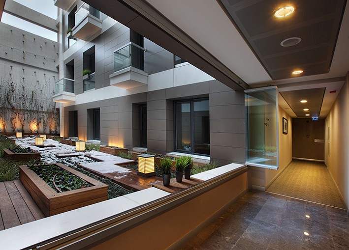 Her daim yeşil kalacak bir soluklanma mekanı olması istenen avlunun doğu sınırını oluşturan sağır komşu duvarının tırmanıcı yeşillikler ile kısa sürede yaşayan bir yeşil duvara dönüşmesi planmış.