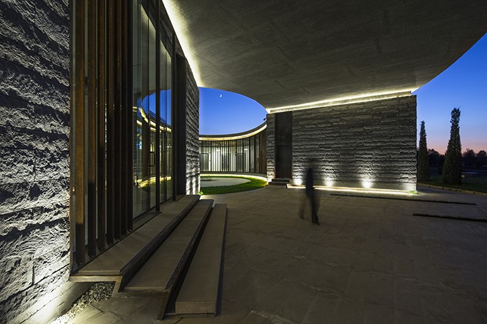 38° 30° Çiftliği’nin doğa ile iç içe konumlandırılması; toprak tonlarındaki renk kullanımları, doğal malzeme seçimleri ve arsaya yerleşim biçimi ile güçlendirilmiş. Yeşil dokuyu ve peyzajı avlunun içine alan yapı, çalışanlarına ve ziyaretçilerine konforlu bekleme, dinlenme ve etkinlik alanları sunmayı hedeflemiş.