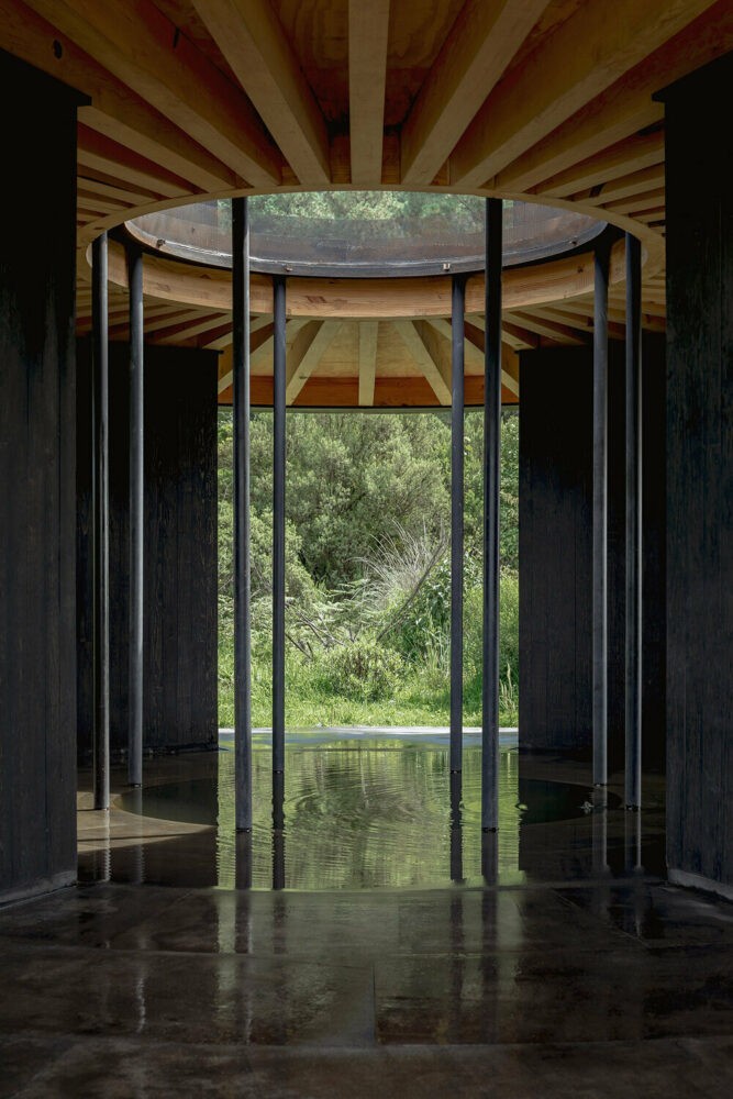 Evden birkaç adım ötede, tasarımında Louis Kahn'ın Trenton Hamamı ve Bramante'nin Tempietto'sundan referansları birleştiren bağımsız hamam yer alır. Sürdürülebilir mimari örneklerden dairesel yapı dört farklı banyo aktivitesine sahiptir; sıcak banyo, sauna, buhar duşu ve banyo… Tüm odalar merkezde gökyüzüne açık bir soğuk dalma havuzunu çevrelemiş.