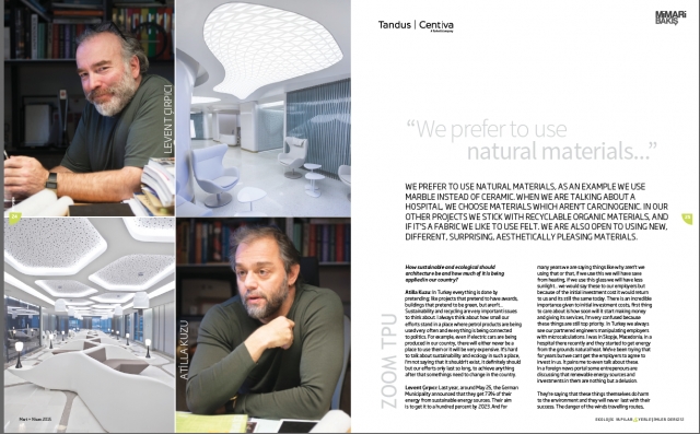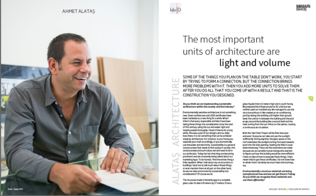 As a publication which is based on sustainability policies, it has become a habit for us to always welcome our readers with new innovations. We hope that you enjoy it too. Starting with our February 2015 issue, we will be sharing some of our architects interviews with you, the reader, in English. By doing this we aim to break the language barrier and reach a wider reader range.