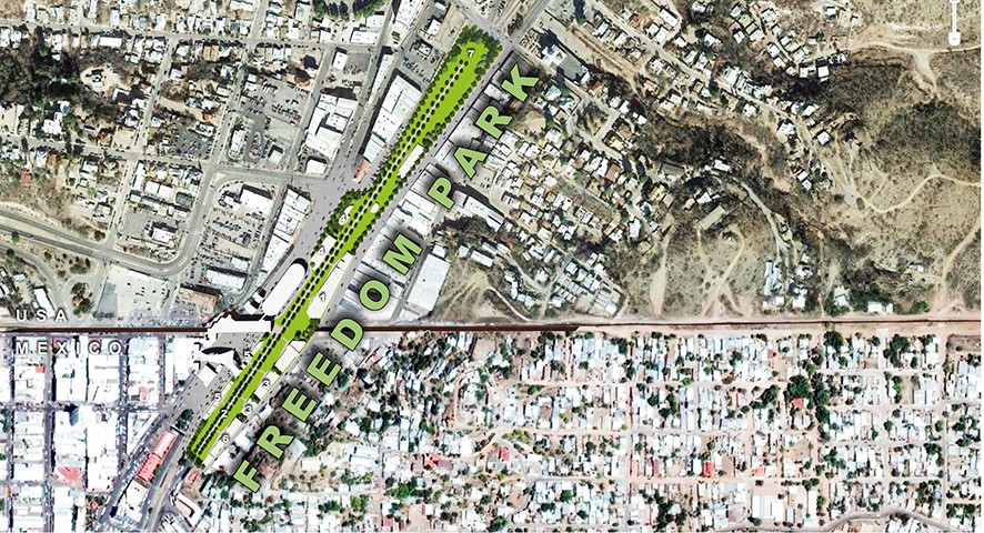 Nogales şehrini tam ortadan bölen sınır duvarının üzerinde tasarlanan "Özgürlük Parkı" iki halkın bir arada eşit şartlarda yaşamasını öngörüyor. Sınır üzerinde yer alan ve cam ile çevrili olan parkta sosyo-kültürel, ticari, rekreatif ve benzeri aktiviteler yer alıyor.