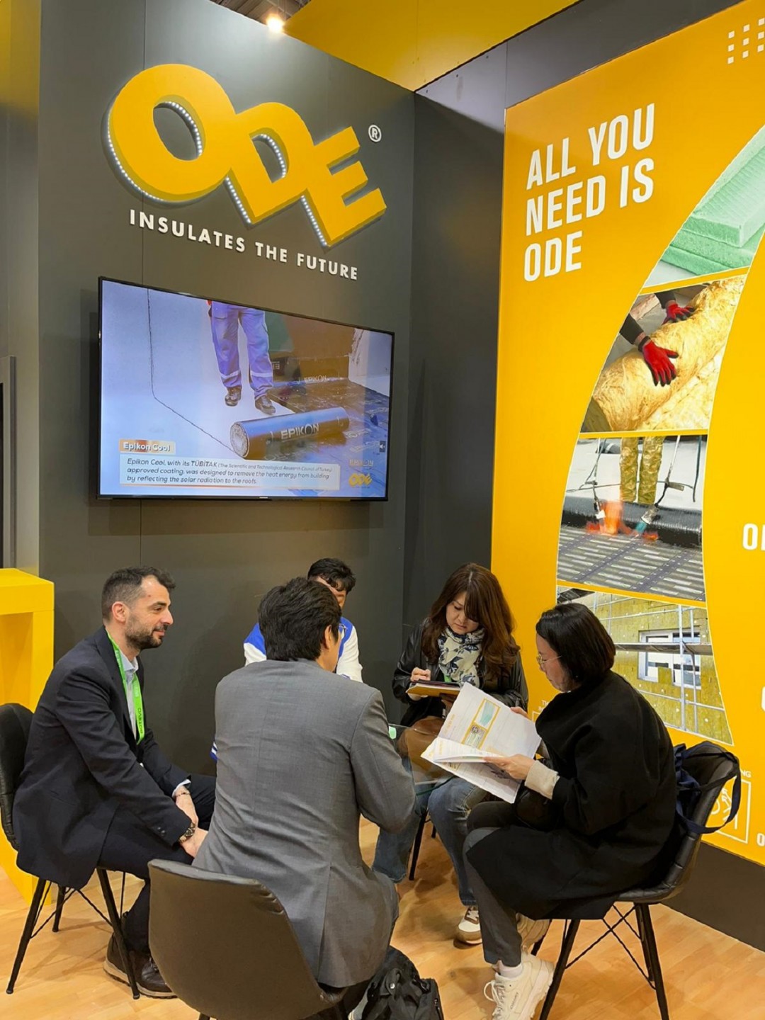 ODE Yalıtım, yapı yalıtımı alanında geliştirdiği ürünlerle bir binanın temelinden çatısına kadar farklı detaylarda ısı, su, ses yalıtımları ve yangın güvenliği sağlanmasına yönelik çözümler üretiyor. Fuarda da ekstrüde polistren esaslı ısı yalıtım malzemesi (ODE Isıpan), bitümlü su yalıtım örtüleri (ODE Membran), ısı-ses-yangın yalıtımında kullanılan cam yünü ürünleri (ODE Starflex) ile taş yünü ürünleri (ODE Rockflex) olmak üzere yapı yalıtımı ürünleri tanıtıldı.