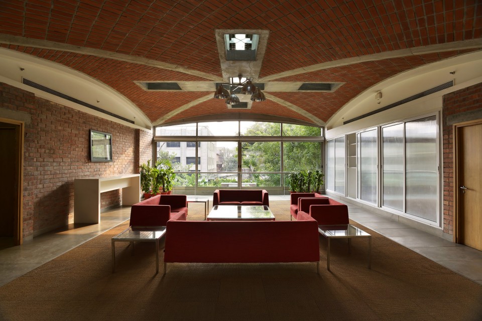 Mantar kolonlarında yapısal açıkta kalan betonun yenilikçi kullanımı tonozlu tuğla tavanlarla birleştirilmiştir. Bir sütunun mantar şekli, devamlılık içinde bir sonraki buluşuyor, proje boyunca sürekli bir labirent ve kemer labirenti oluşturarak çok hoş bir çalışma ortamı yaratıyor. RCC'yi tuğlalarla kullanma ve yapıyı sergileme kararı, ticari bir binada zanaat duygusu elde etmek için tasarımın erken bir aşamasında alınmış.