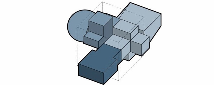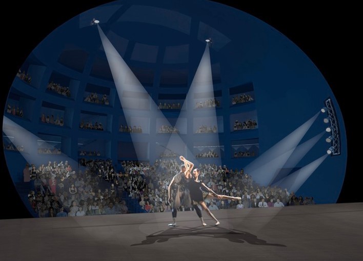 Proscenium Playhouse, küple kenetlenen asılı bir gezegene benzer. Seyirci, oditoryuma erişmek için bir iç ve dış kabuk arasında dolaşır. Oditoryumun içindeki iç kabuk ve küpün kesişimi, akla gelebilecek her türlü çerçeveyi yaratan benzersiz bir sahne önü oluşturur.