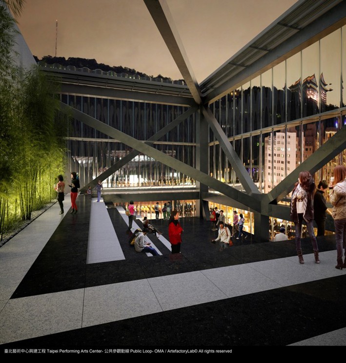 Yaklaşık iki yıl sonra OMA, iki aşamalı uluslararası bir yarışmanın galibi ilan edildi. Yarışma sonucunda yeni inşaat projesi Taipei Gösteri Sanatları Merkezi hizmete girdi. OMA ortakları Rem Koolhaas ve David Gianotten tarafından yönetilen bu iddialı proje, özel formu nedeniyle mimarlar arasında çok fazla tartışma yarattı. Bir dizi programatik işlemle biçimlendirilen form, çeşitli performansları barındırmak için üç tür tiyatroyla birleştiriliyor.