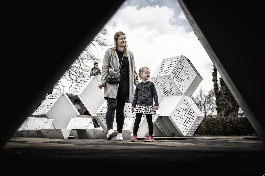 Oyunun doğasında bulunan yaratıcılığı kavramsal olarak temsil eden modüler oyun alanı birbirine monte edilen 35 beyaz küpten oluşuyor. Gezici oyun alanı Orta Danimarka bölgesini gezerek hedef nüfusu mutlu etmeye odaklanıyor.