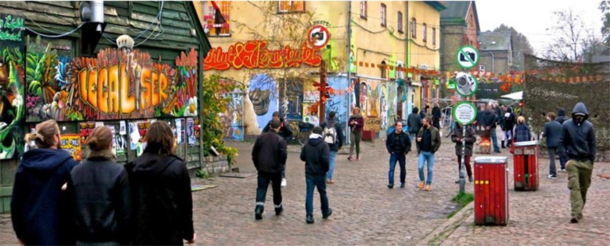 Christiania, insanların duvarların üzerine istedikleri boyamaları yaptığı, kendi evlerini kurduğu ve kendilerine ait kanunlarla yaşadığı özgür ruhlu bir kasaba.