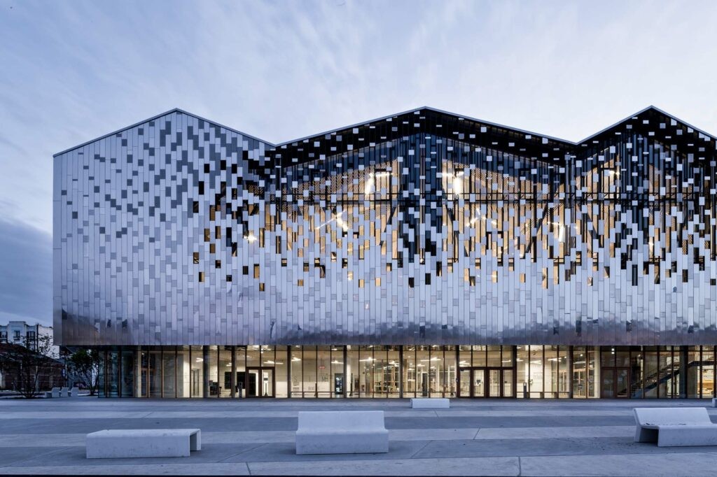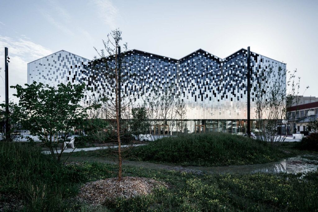 Yerine sıkıca sabitlenmiş bir ikonun görüntüsünde şekillendirilen çağdaş bina, yine de yeni işlevine uyum sağlamak için yeniden yapılandırılıyor. İlk olarak, kamusal alanın eylemin kalbine kaymasına izin vermek için kütlesi sanki ustalıkla kaldırılıyor. Daha sonra, materyalliği ve mat pişmiş toprak tuğlaların mirasına, fırçalanmış paslanmaz çelik saclardan yapılmış canlı bir kaplama ile yanıt veriliyor.