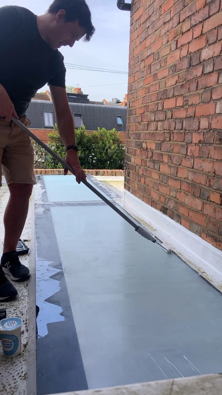 Ancak Greenhill, kaplamanın pencerenin dışına uygulanmasının soğutma açısından daha etkili olduğunu da belirtti. Çünkü bu yöntem, güneş ışınlarının binanın ısısını arttırmasını engelliyor. Kendi evinde yaptığı denemelerde, yoğurdu fırça ile uygulamanın başarılı olmadığını ancak bir rulo ile uygulamanın, seramik fritin dokusunu anımsatan ince bir kaplama sağladığını fark etti. Greenhill, süt ve yulaf gibi farklı türde yoğurtları denedi ve hepsinin benzer şekilde çalıştığını, pencere başına yalnızca yaklaşık bir yemek kaşığı yoğurt gerektiğini ve düşük yağlı yoğurtların daha yarı saydam bir etki verdiğini keşfetti.